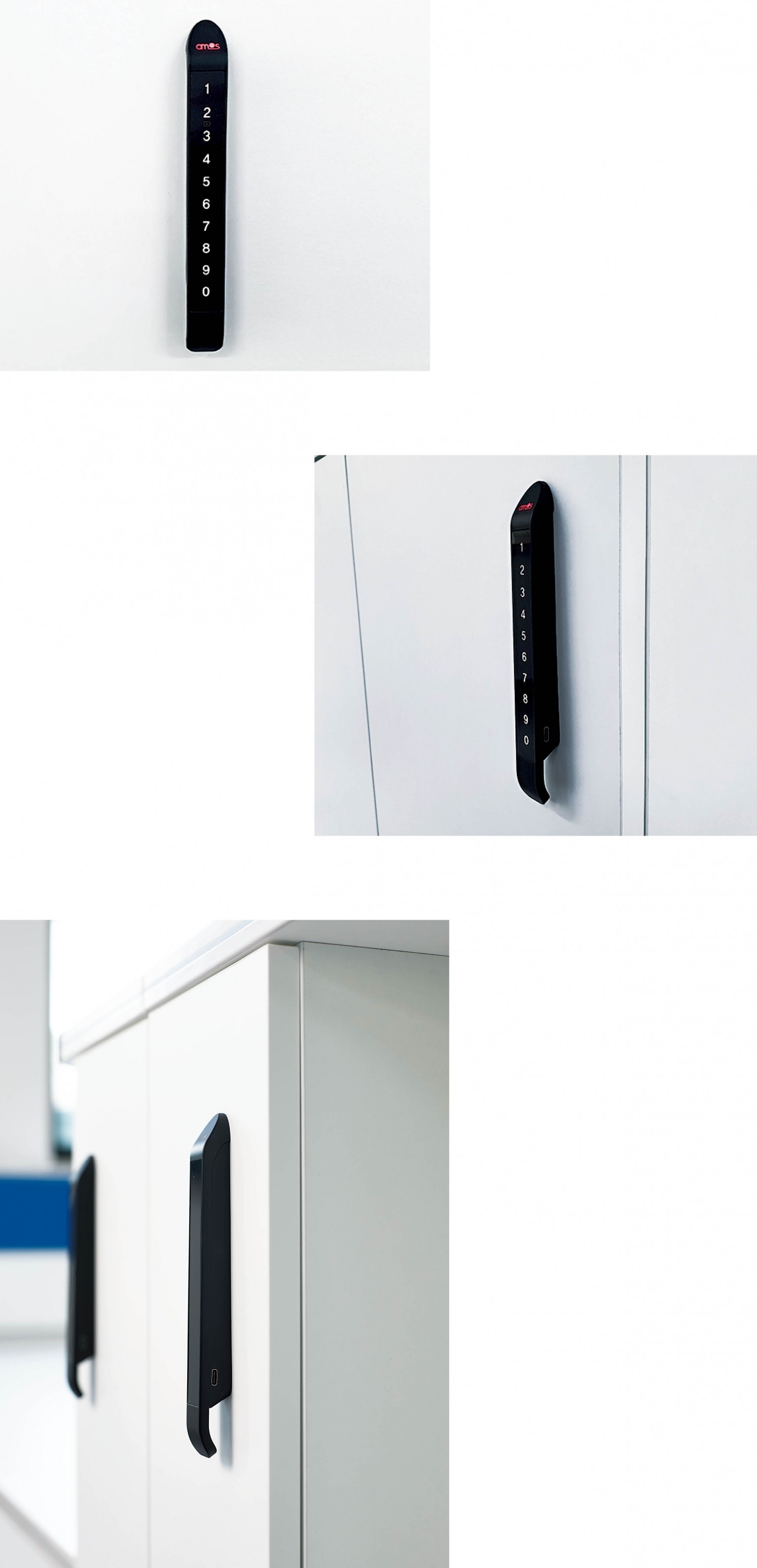 새롭게 선보인 아모스아인스가구의 스마트락은 독보적 기술과 혁신적 디자인이 담긴 손잡이 일체형 디지털 시건 장치입니다. 사용시 손가락 터치만으로 번호 키가 활성화 되고, 비사용 시 부드러운 곡선이 조화를 이룰 수 있는 장식효과의 세련된 손잡이로 가구 장식으로도 감각적인 제품입니다.